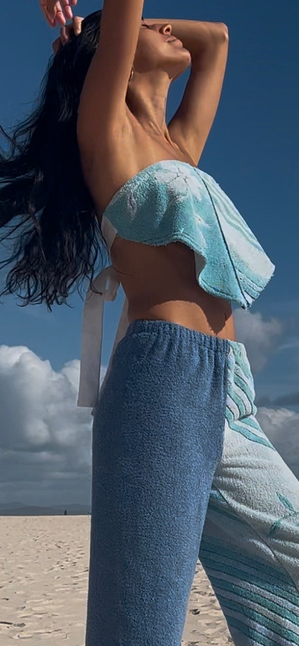 Zero waist design, each top is hand cut individually from vintage towelling pre dating 1980. Made in Byron Bay where seamstress are paid for their craftsmanship, which is reflected in the price. These are one of a kind and can not be replicated.