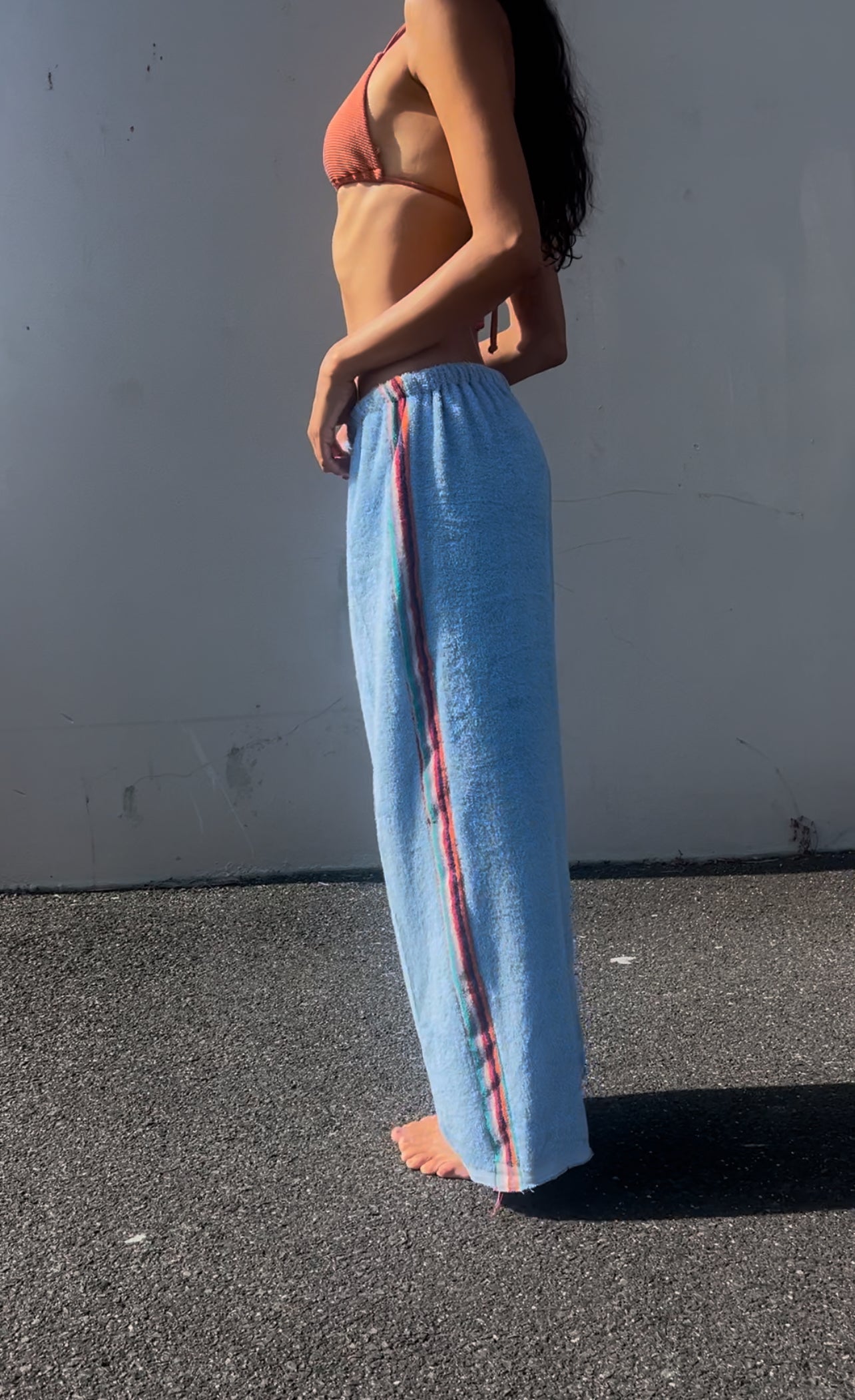 Crafted from 100% cotton, nos (new old stock) towels. These pants offer a luxurious, tailored feel. With the comfort of the elastic band, finished with a casing so you can roll them.