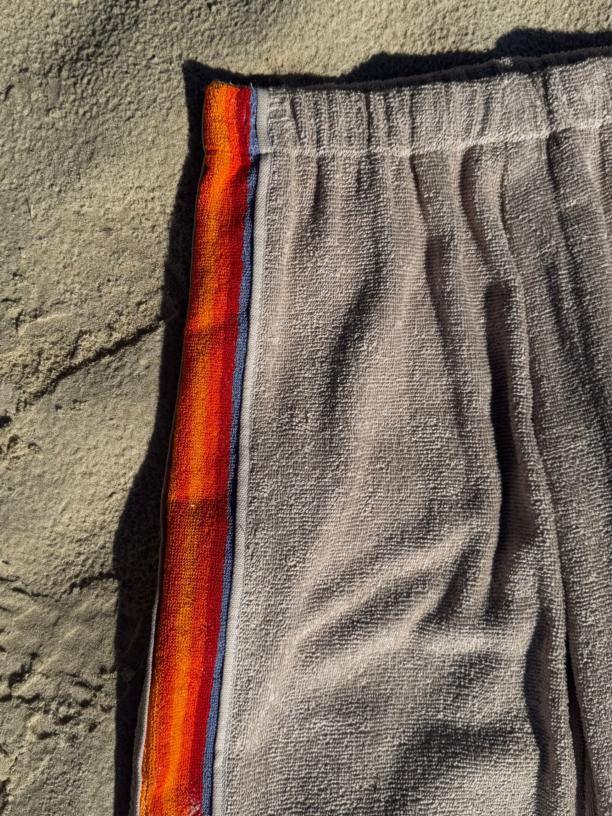 Crafted from 100% cotton, nos (new old stock) towels. these sit low rise. These pants offer a luxurious, tailored feel. With the comfort of non roll elastic, finished with a casing so you can roll them.