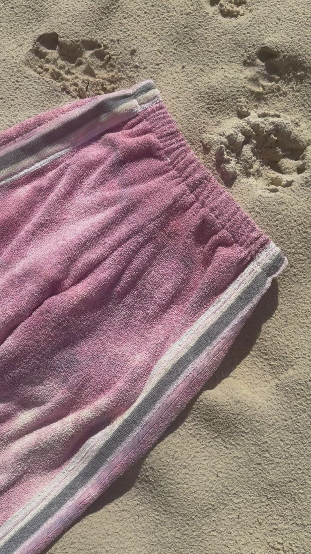 Sizing: Due to the nature of towelling, sizing may vary. if in doubt always size up. The waist is elastic, however towelling does not stretch, so it is important they can pull on over the widest part of the hips. pictured worn by size 8 model 5,10 in height