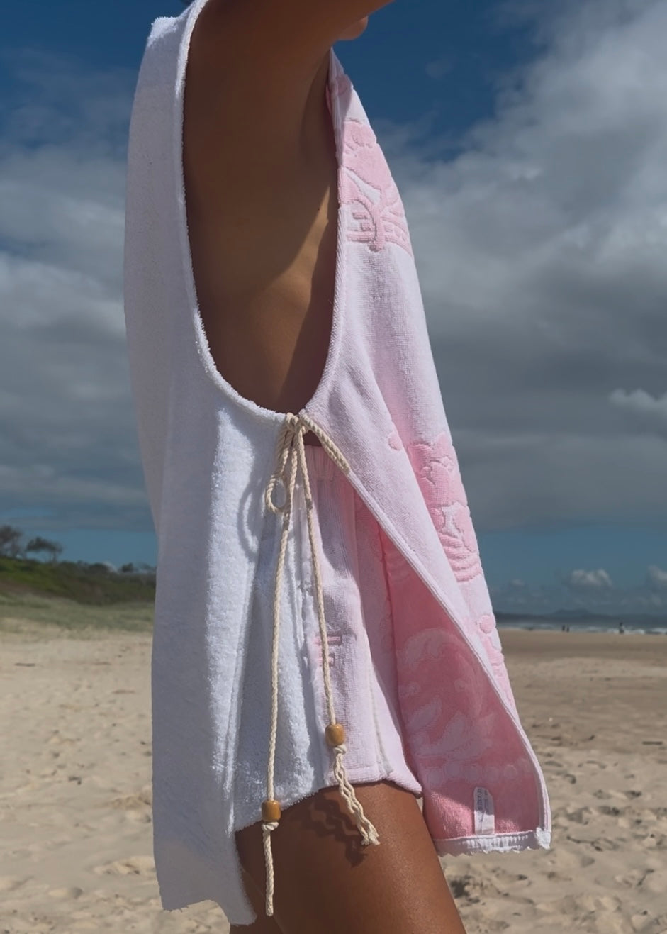Zero waist design, each top is hand cut individually from vintage towelling pre-dating 1980. Made in Byron Bay where seamstress are paid for their craftsmanship, which is reflected in the price. These are one of a kind and can not be replicated.