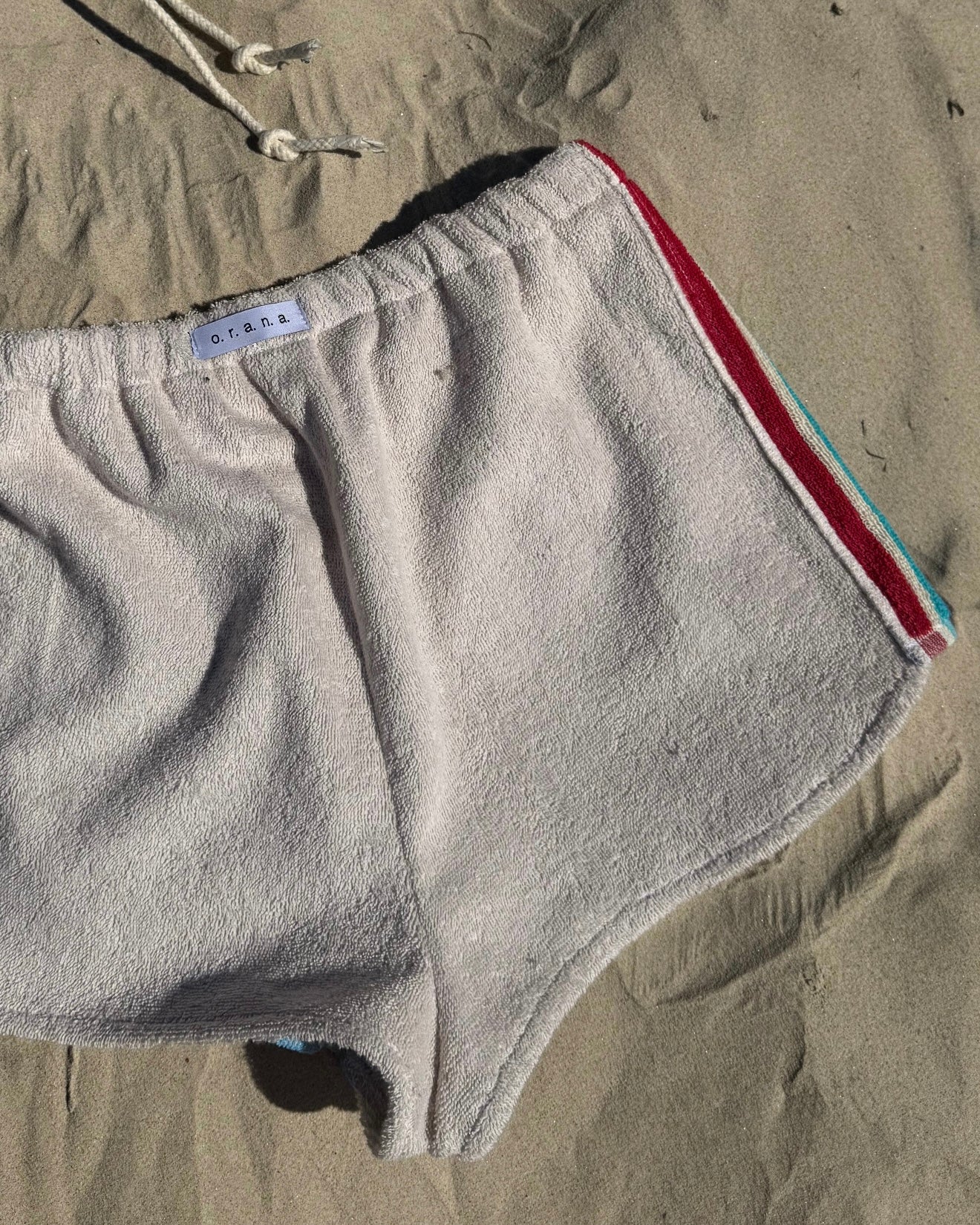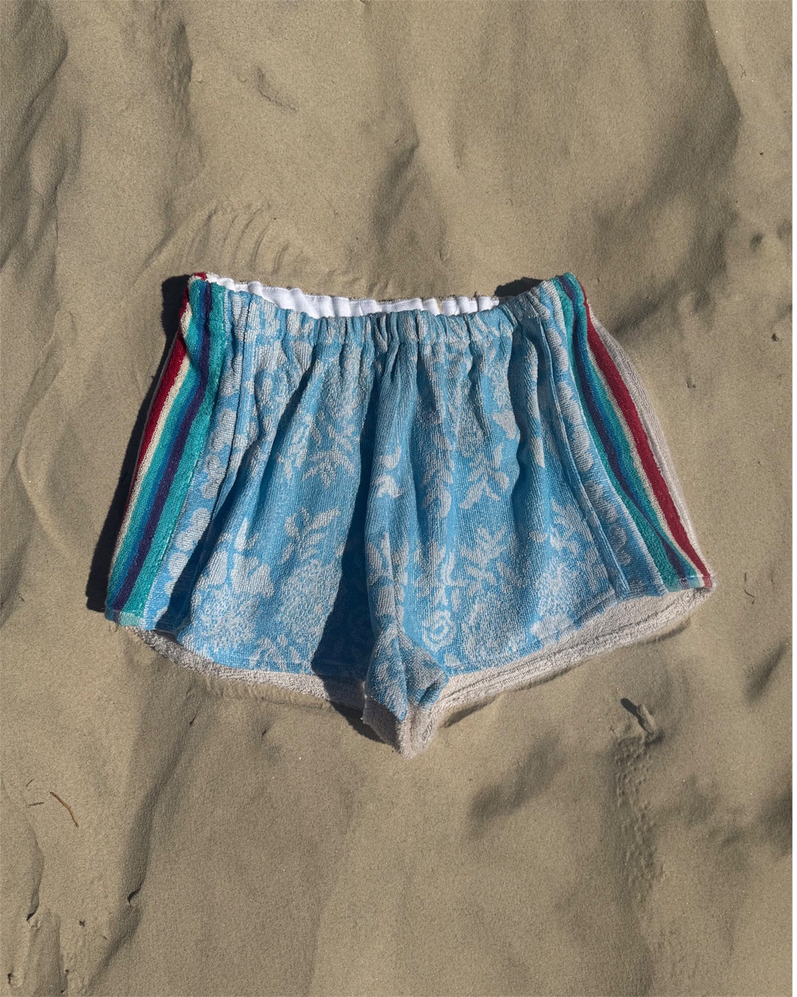 Sizing: Due to the nature of towelling, sizing may vary. if in doubt always size up. The waist is elastic, however towelling does not stretch, so it is important they can pull on over the widest part of the hips. pictured worn by size 8 model 5,10 in height